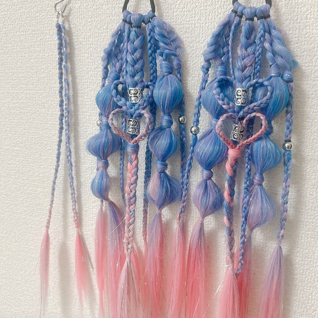 ヘアゴムエクステになります セット内容 ♦ヘアゴムエクステ ツインテール用2本 ティンセル入 約60cm ♦ポイントブレイズ 2本 ティンセル入り 約30cm ツインテール用2本になります 1本でポニーテールにも使用可能です ポイントブレイズはカニカンが付いています 前髪用におすすめです 発送の際、折り曲げて袋にお入れします事、ご了承ください お受け取りいただけましたら、袋から出してかけていただけたらと思います 潰れ等の対策として、エクステは全て、新品の箱に入れて梱包させていただきます ハンドメイド商品となります 細かな事が気になる方、ご購入はお控えください ご不明点ございましたら、ご購入前に必ずご連絡ください エクステ ヘアゴムエクステ ウィッグ ブレイズ ポニーテール ツインテール リングエクステ ダンス イベント 発表会 体育祭 運動会 卒業式 祭り 祭 コスプレ 衣装 フェス キッズ キッズダンス 子供 ギャル コギャル KOGYARU 原宿 ベビタピ しなこちゃん しなこ プリキュア アイプリ プリンセス ヒップホップ HIPHOP KーPOP 推し活 推しカラー 派手髪