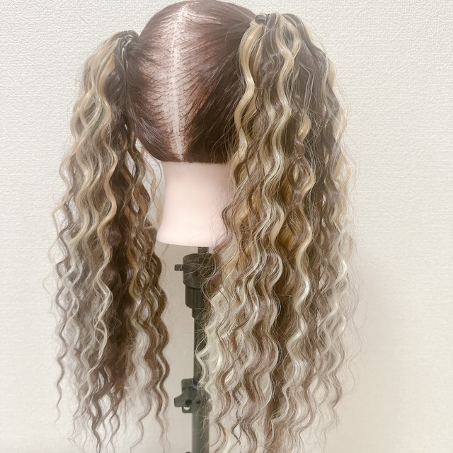 ヘアゴムエクステ ブレイズ入り ゆるふわウェーブ ツインテール 2本