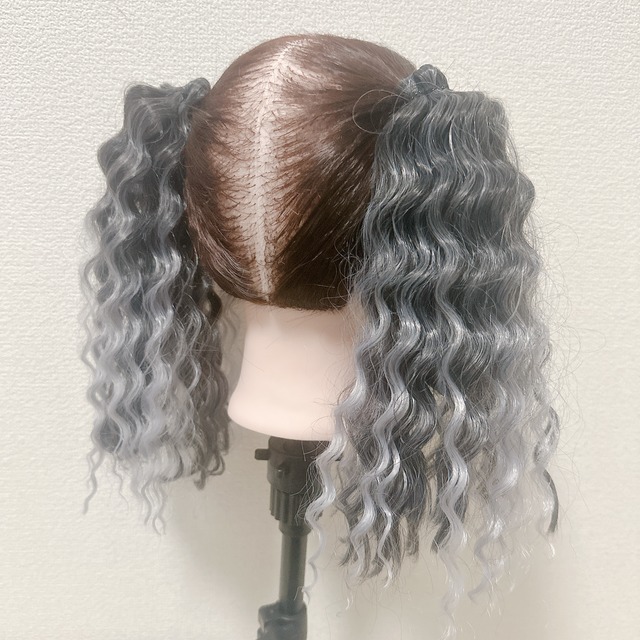 ヘアゴムエクステ ウェーブ ツインテール 2本