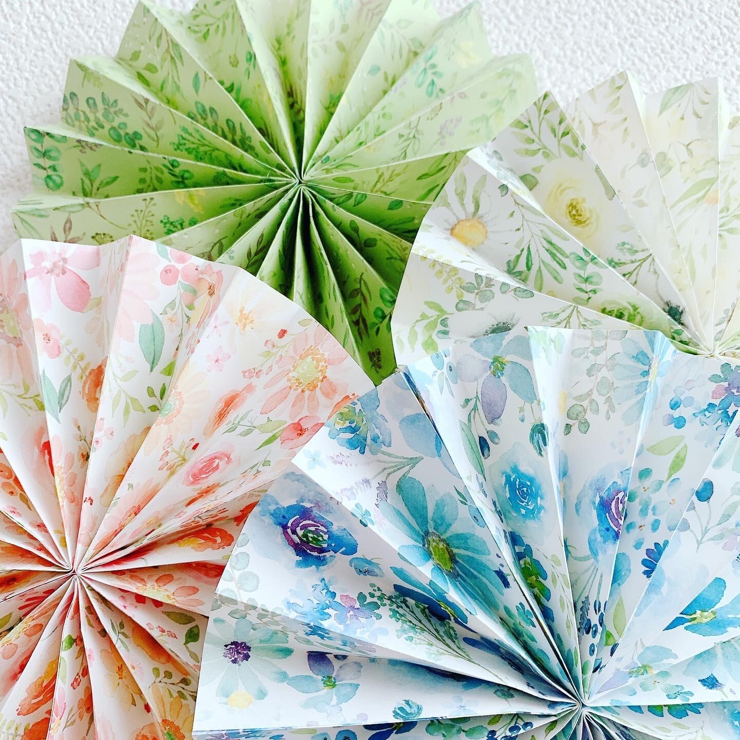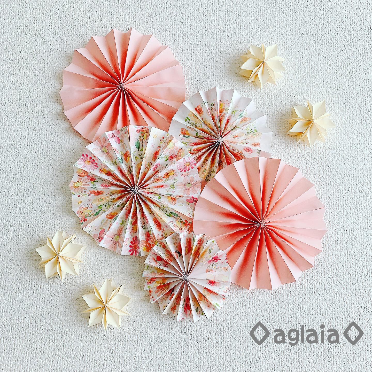 通常のペーパーファン5個と、小さな立体ペーパーファン4個をセットにしました