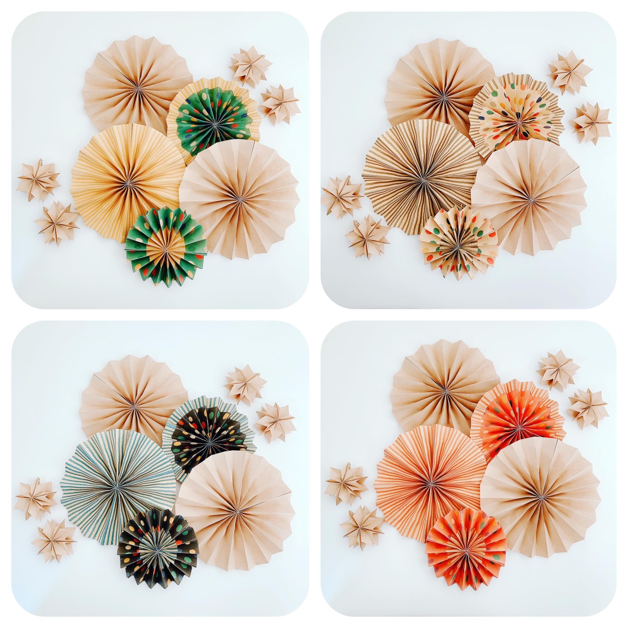 通常のペーパーファン5個と、小さな立体ペーパーファン4個をセットにしました