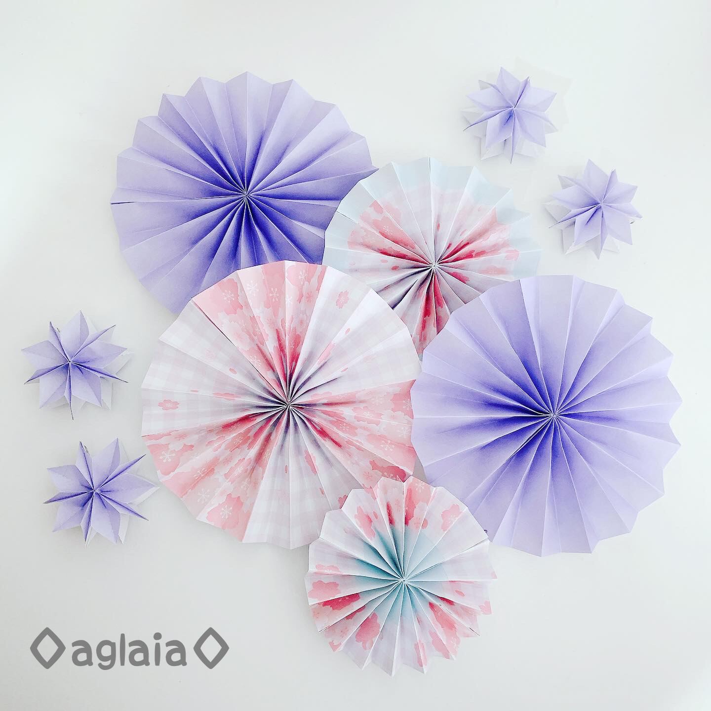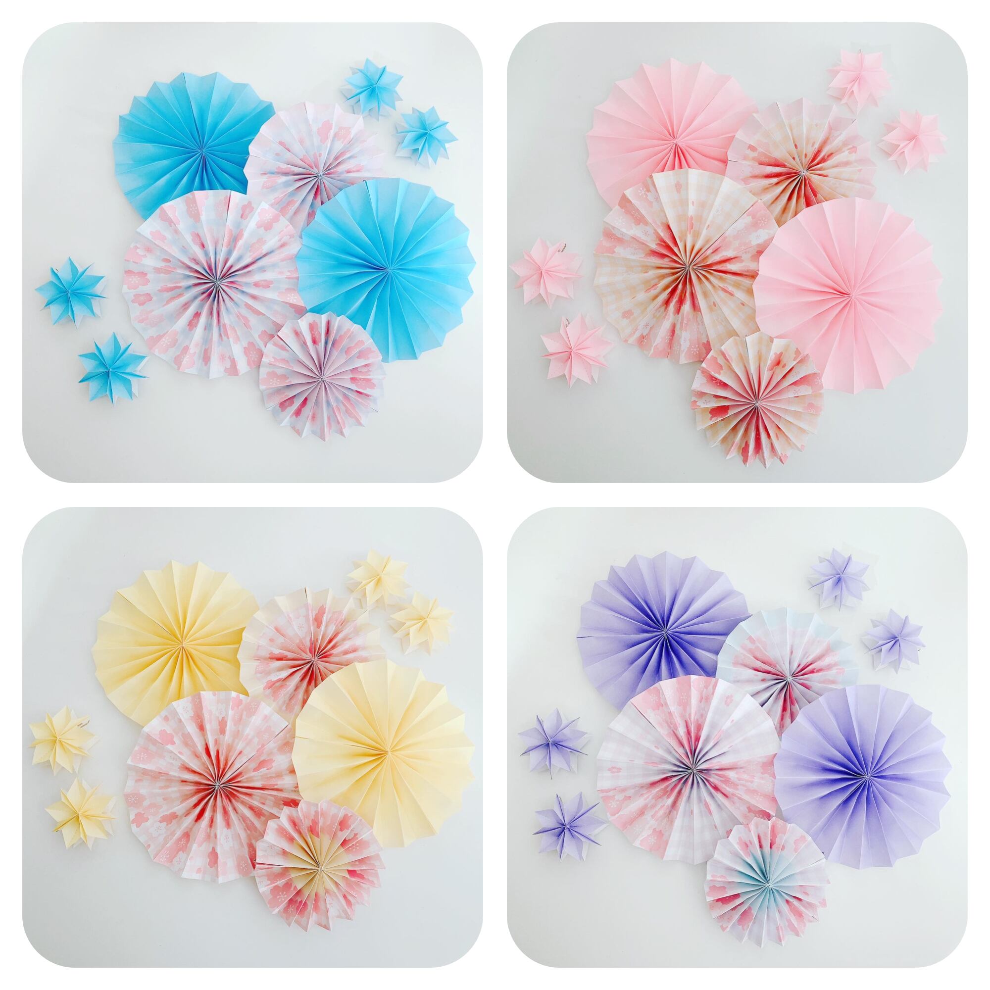 通常のペーパーファン5個と、小さな立体ペーパーファン4個をセットにしました
