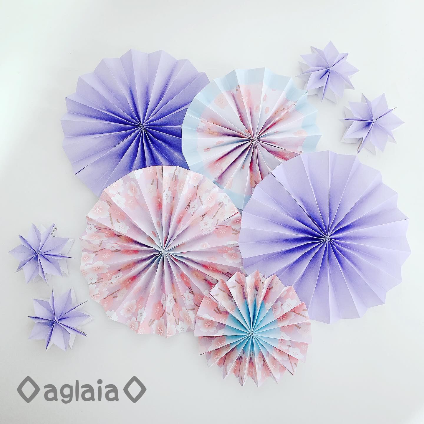 通常のペーパーファン5個と、小さな立体ペーパーファン4個をセットにしました
