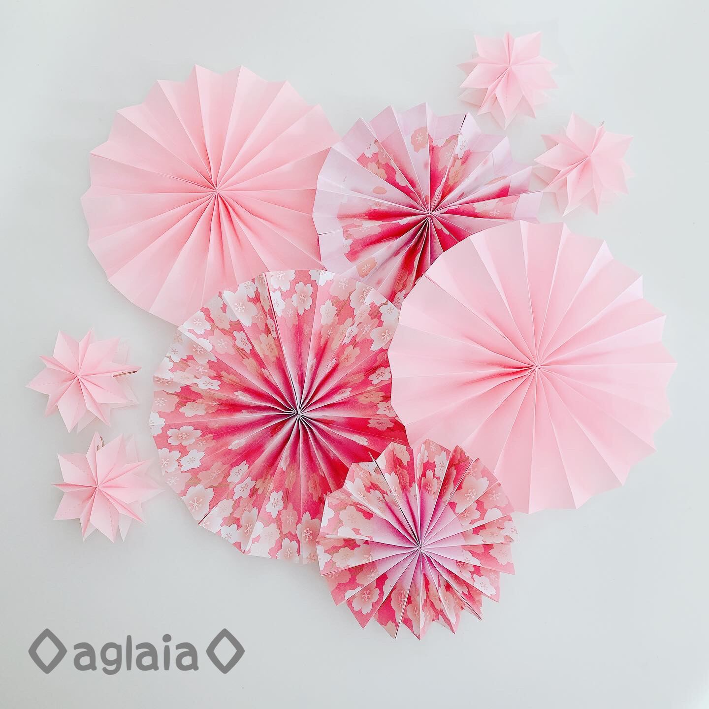 通常のペーパーファン5個と、小さな立体ペーパーファン4個をセットにしました